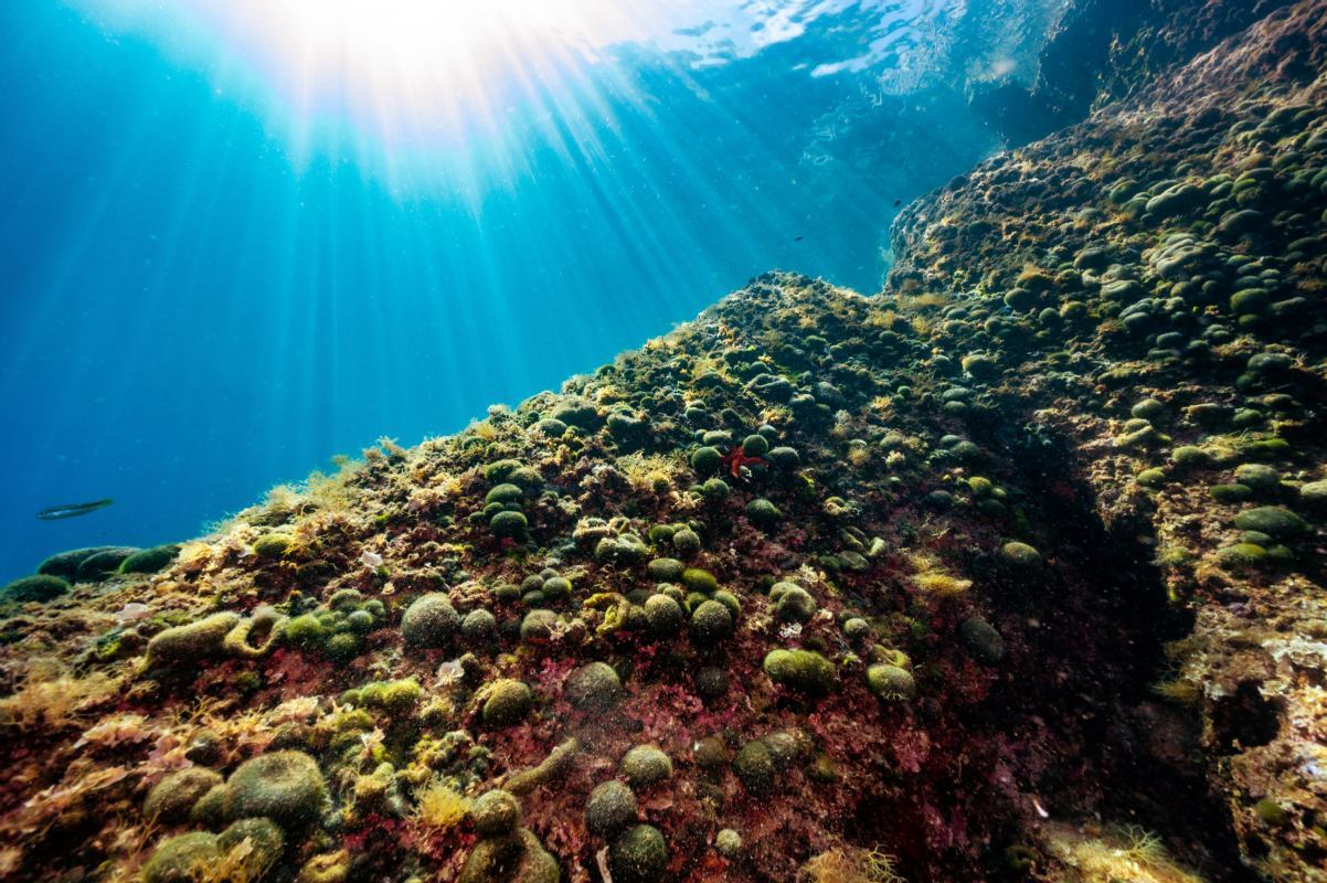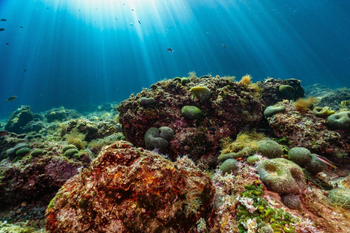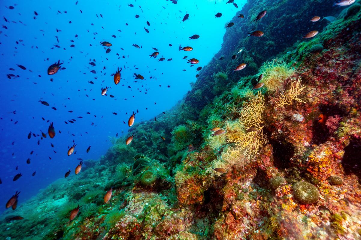 Su questo fondale è possibile osservare anche dei polipi, che si nascondono abilmente nelle cavità e nelle fessure della roccia.